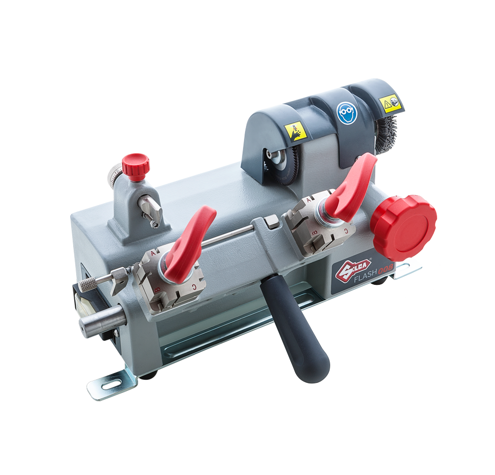 Flash 008 es la duplicadora mecánica para llaves planas para cilindros y vehículos y para llaves en cruz. La máquina corta también llaves con cuello largo, tope en punta y mecanismo flip.